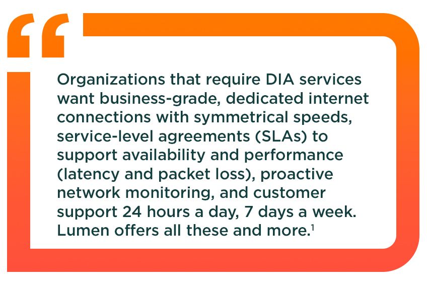 Trust in Lumen, the Frost & Sullivan 2025 North American Company of the Year for Dedicated Internet Access, to provide reliable, secure and enterprise-grade DIA.