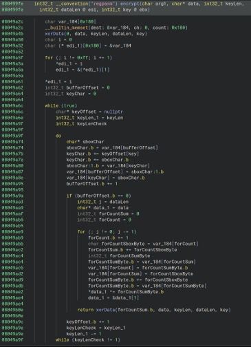 The samples we examined, along with those mentioned by Polyswarm, do not appear to have any additional functionality aside from proxying traffic. The first sample, 1c74b1195250632f2f1d1a9066f07f6e0a8c12dff40aeb3c1fe22440c97bc8ee, is a Linux variant of the SystemBC malware. The malware first decrypts and connects to the C2 contained in the embedded config. The config is XOR encoded using a hardcoded 40-byte key.
