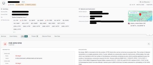 We could not find evidence of specific targeting of VPS providers, however, we discovered that nearly all victimized servers appeared to be riddled with easy to exploit vulnerabilities such as the one below which, according to Censys, has over 160 unpatched CVEs.